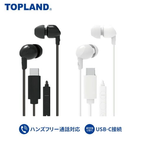 ハンズフリー ステレオイヤホン USB-C AUCMSH1-WT/BK USB接続 高音質 イヤホン ステレオ ハンズフリー通話 マイク リモコン トップランド TOPLAND 【送料無料】