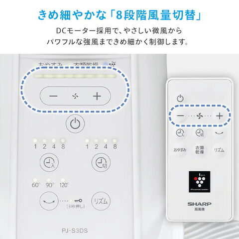 | PJ-S3DS-W 扇風機 DCモーター プラズマクラスター搭載 左右首振り リビング扇風機 PJ-S3DS-W ホワイト |