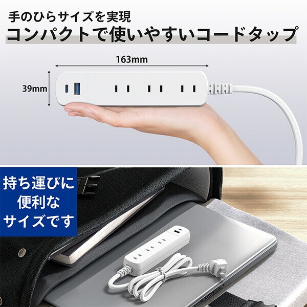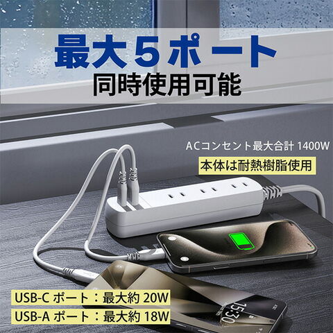 | 商品説明 | ●パワーデリバリー(PD)対応のコード付き電源タップ ●コンセント3口、USB-Aポート1口、USB-C(PD)ポート1口搭載 ●コード長さ:2m ●PD出力:20W ●USBポート両面挿し仕様 ●壁に沿わせることができるL字プラグ ●トラッキング防止プラグを採用 ●二重被ふくコードを採用 ●コンセントを使いながらUSBポートを使用して充電が可能 【コンセント挿し込み口】 ●定格入力:AC100V-125V ●挿し込み口:最大1400Wまで ●挿し込み口数:3個口 【USBポート】 ●定格出力: ・(USB-Cポート)DC5V 3A/DC9V 2.22A/DC12V 1.67A(単独使用時最大) (USB-Aポート)DC5V 3A/DC9V 2A/DC12V 1.5A・ (単独使用時最大) ●ポート数:2個口 |