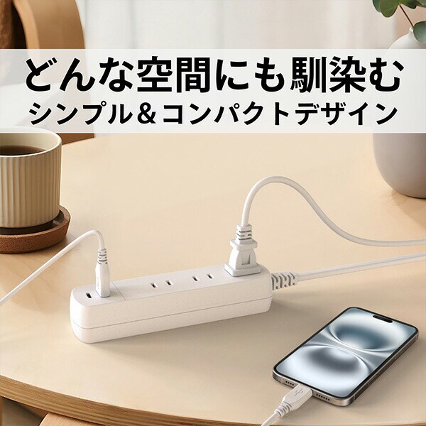 | トップランド TOPLAND 電源タップ スマートコードタップ 2m コンセント 3個口 USB 2ポート PD20W TPD20 |