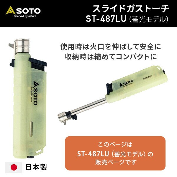 スライドガストーチ 充填式 安全ロック付き 蓄光モデル ST-487 ルミナス 小型 強力 耐風 バーナー ガス 充てん式 軽量 コンパクト 普段使い 登山 キャンプ 蓄光 SOTO ソト 【送料無料】