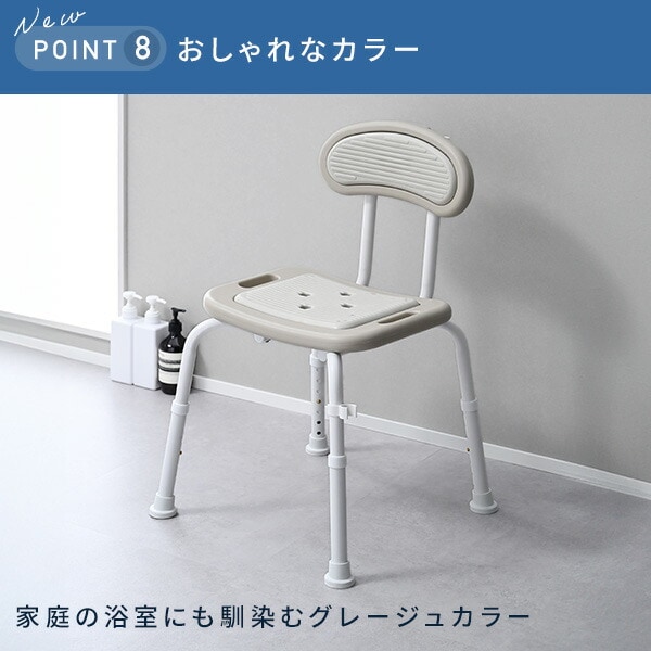 シャワーチェア 背付き 風呂イス 介護用品 入浴介助用品 KCB-54 グレージュ/マットホワイト シャワーチェアー バスチェア 風呂椅子 浴室用椅子 介護 入浴介助 立ち上がり補助 高さ7段階調節 座面丸洗い おしゃれ 山善 YAMAZEN 【送料無料】