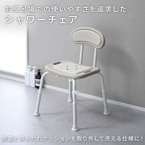 YAMAZEN ヤマゼン 山善 通販 シャワーチェア シャワーチェアー シャワーベンチ バスチェア 風呂椅子 風呂イス 風呂いす 椅子 浴室 介護 介護用 介護用品 入浴介護 入浴介助用品 立ち上がり補助 高さ調節 7段階 耐荷重100kg 背もたれ付き 背付き 滑り止め付き シャワーヘッドホルダー付き 座面取り外し 丸洗い アルミ製 おしゃれ グレージュ T0K12 |