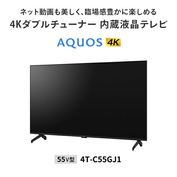 アクオス(AQUOS) 55V型 液晶テレビ 外付けHDD対応 4Kダブルチューナー 4T-C55GJ1 テレビ 液晶テレビ 一人暮らし 新生活 チューナー 大型テレビ 低反射 4K放送 55型 55インチ シャープ SHARP 【送料無料】