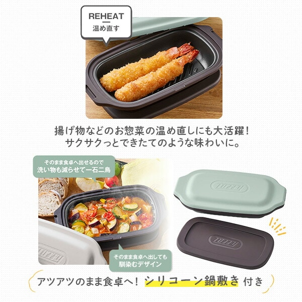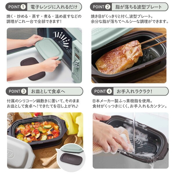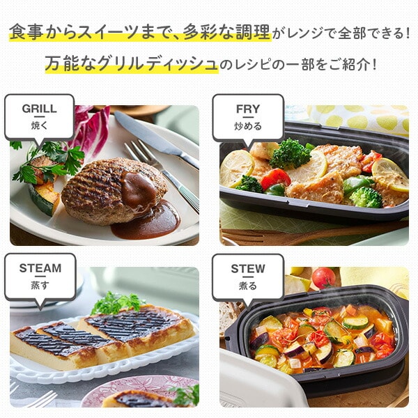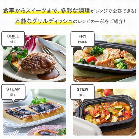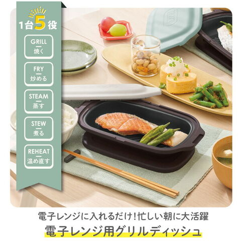 | トフィー Toffy 電子レンジ用 グリルディッシュ レンジ用グリルプレート フタ付き 1台5役 レシピ付き レンジ調理 波型プレート K-MW6-PA/GE |
