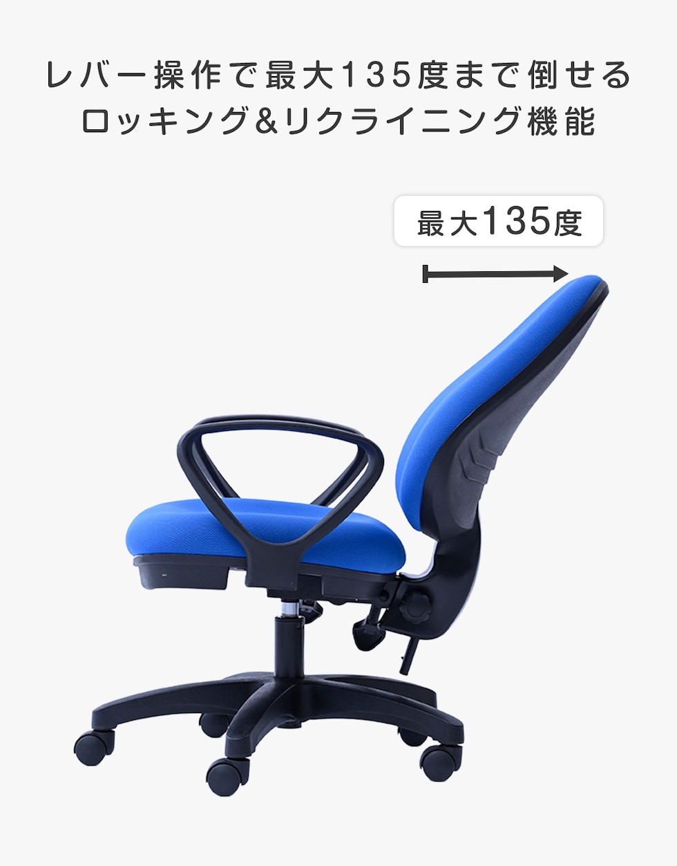 | 商品説明 | ●体にフィットするデザインで長時間の作業も快適 ●体重をしっかり受け止める、安定感抜群の肉厚ウレタンフォーム ●座面厚さ:約50mm ●背部厚さ:約40mm ●レバー操作で最大135度まで倒せる、本格ロッキング&リクライニング機能搭載 ●約30度の範囲でお好きな角度に調整可能 ●ワンタッチレバー操作でガス圧昇降 ●座面高さの調節可能(39.5cm~47cm) ●背部の高さ約5.5cm調節可能 ●肘掛け:あり ●キャスター付きで移動もラクラク ●外部機関による試験実施で安心安全 ・背もたれ耐久性:5万回 ・座面耐久性:10万回 |