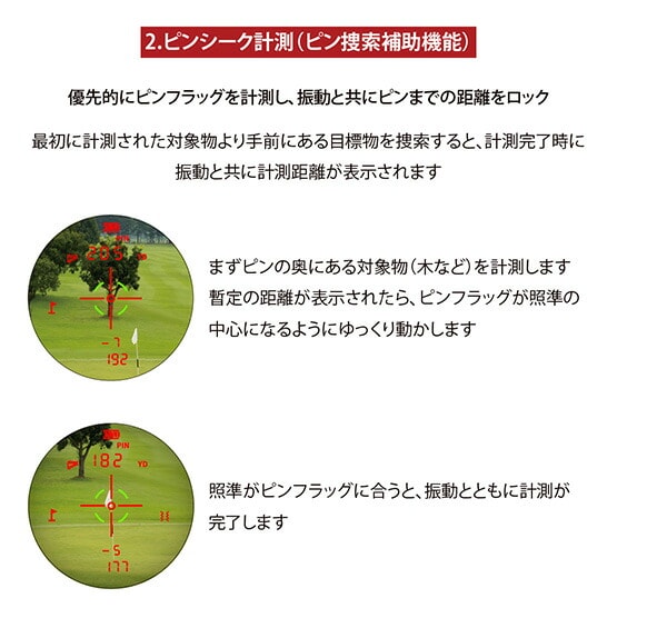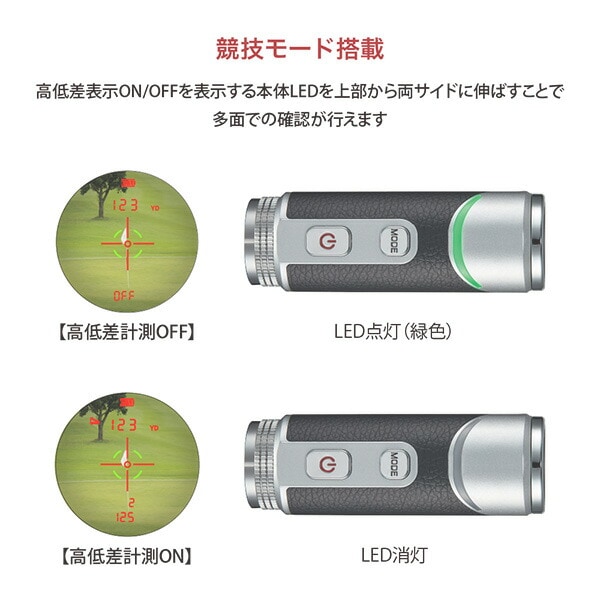| 商品説明 | ●ディスプレイ表示を「緑・赤」の2色にすることで視認性の向上を実現した距離計測器 ●業界最大クラスの計測距離「1600ヤード以上」を実現 ●目標物の照準がよりスムーズに合わせやすくなり、ストレスのない正確な計測が可能に ●超軽量、コンパクトデザインにすることでポケットに入れてプレーを行うことも可能 ●レザー調及び各金属部を活かしたデザインで高級感を演出 ●バッテリー:リチウムポリマーバッテリー ●充電時間:3.5時間 ●フル充電時使用回数:ポイント計測時 約39000回 ●計測範囲:5~1640Yds(5~1500m) ●計測誤差:± 1m ●倍率:6倍 ●レーザー波長:905nm ●レーザー規格:IEC 60825-1 Class 1M Laser Product ●レンズ径/有効径:21mm/19.8mm ●ひとみ径:3.3mm ●アイレリーフ:14.7mm ●動作温度:0~50℃ ●保管温度:-20~60℃ ●防水:IPX4相当(生活防水程度) ●付属品:レザー調ケース、レンズクロス、USBケーブル Type-C、取扱説明書、保証書 |