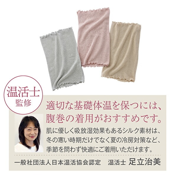 | 商品説明 | ●万病の元である「冷え」から、365日あなたを守る腹巻 ●冬場はもちろん、冷房や飲み物で体が冷える夏の冷え対策にも ●蒸れにくく保湿性のあるシルク繊維で、季節を問わず冷えやすいお腹と腰をケア ●M~3Lサイズまで対応の伸び伸び素材で体型を選ばない ●男女兼用でお腹の弱い男性にもおすすめ ●エコロジーシルクと呼ばれる絹紡紬糸を使用しており環境にも優しい腹巻 ●ウエスト93cmまで対応 ●妊婦さんにもおすすめ ●アウターにもひびかない薄さ ●日本温活協会認定温活士監修 ●手洗い可能 ※表面にはエコロジーシルク特有のネップ(凹凸)が見られます。また、稀に他色糸が入り込んでいる場合があります。 |
