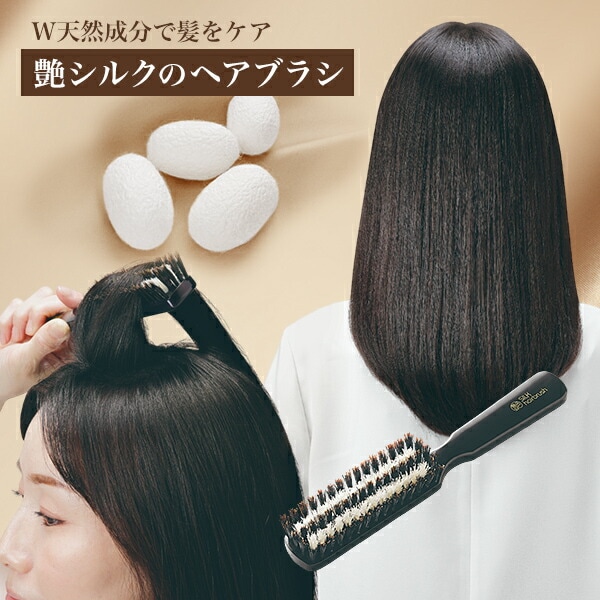 艶シルクのヘアブラシ ブラック ヘアセット ヘアブラシ ブローブラシ 艶髪 ツヤ髪 天然シルク 天然豚毛 日本製 メイダイ 【送料無料】