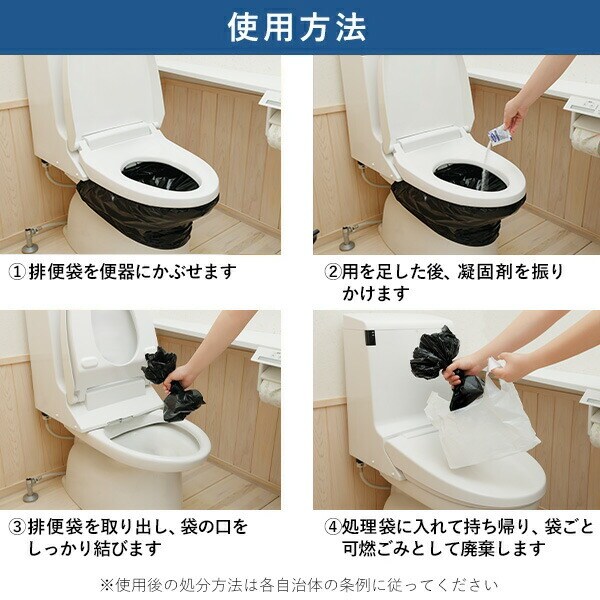 | 材質 | 凝固剤:高分子ポリマー 排便袋/処理袋:ポリエチレン |