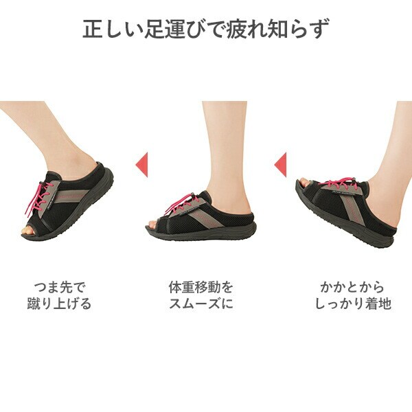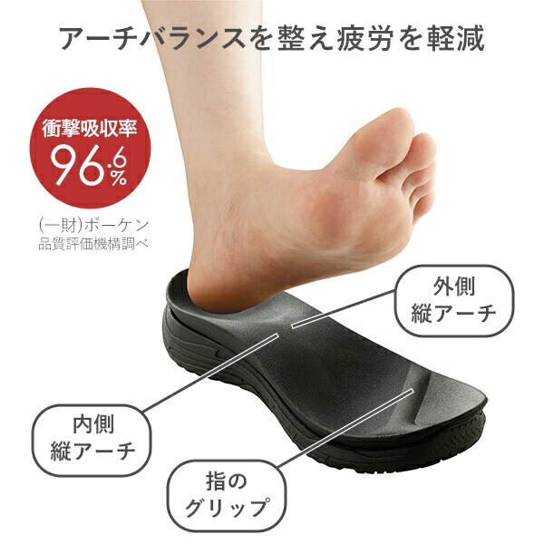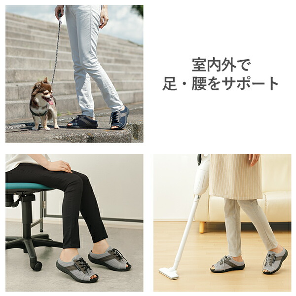 | 商品説明 | ●医学博士監修アーチを整えるインソール内蔵サンダル ●まるでスニーカーのように楽に歩ける独自構造、サッと履けてぐんぐん歩ける ●アーチ構造が歩行時の衝撃を吸収、疲労を和らげ足腰の負担を軽減 ●外反母趾の方でも足指ラクラクの4Eサイズ ●通気性の良いメッシュ生地 ●水洗いできていつでも清潔 |