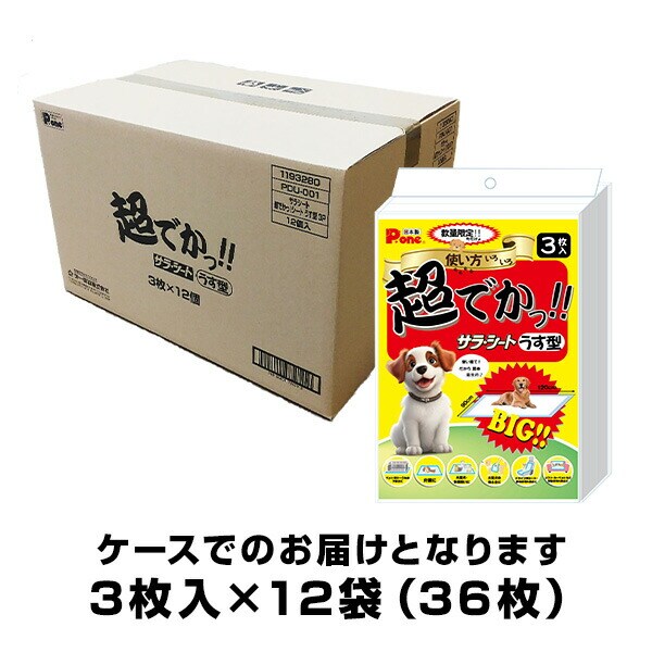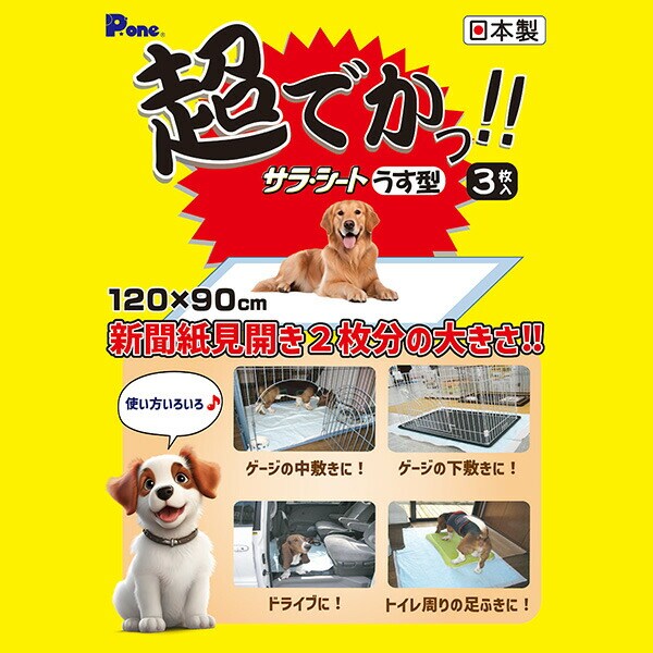 ペットシーツ 120×90cm 超でかっ!! サラ・シート うす型 日本製 3枚入×12袋(36枚) PDU-001 ペットシート 薄型 使い捨てシーツ 使い捨てシート 大判 超大判 ワイド シニア犬 大型犬 多頭飼い 介護 ケース 第一衛材 ピーワン P.one 【送料無料】