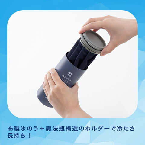 | 商品説明 | ●冷たいまま持ち運べる氷のう ●魔法瓶構造のホルダーで冷たさ長持ち ●形状が変化する布製氷のう ●おでこなどを広範囲に冷やせるので発熱時にも活躍 ●500ml缶の保冷ホルダーとしても使用可能 |