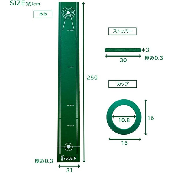 | JCフレンド パターマット 2.5m コンパクト カップ/ストッパー付き YJC-PM01 |