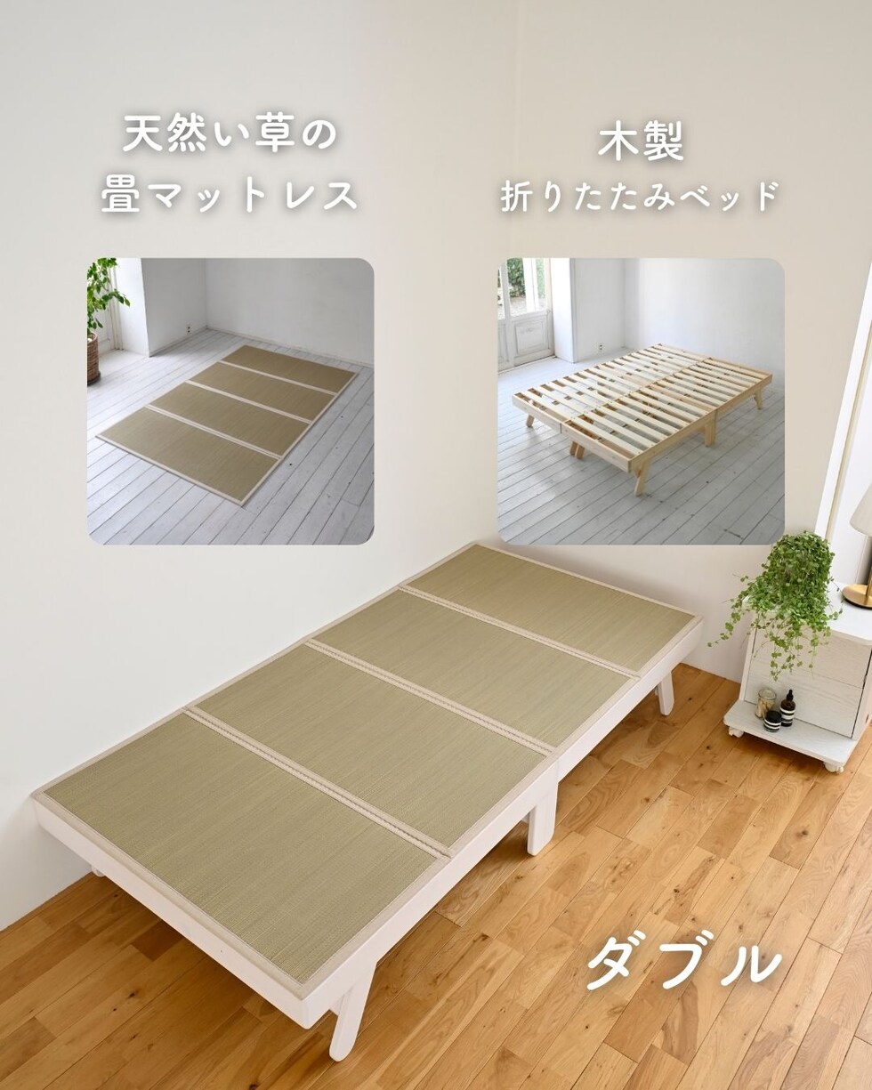 畳ベッド 折りたたみ 折りたたみベッド い草 畳 木製 パタントベッド ダブル ナチュラル(無塗装) 畳 い草 マットレス 四つ折り 折りたたみ すべり止め付属 ベッドフレーム ベッド 山善 YAMAZEN 【送料無料】