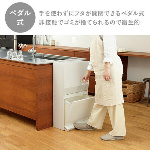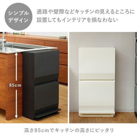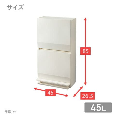 | 商品説明 | ●通路で使えるペダル分別ストッカー ●容量:45L(1段22.5L) ●適応ポリ袋サイズ:45L(幅65×高さ80cm) ●防菌・防汚加工 ●通路を妨げない奥行26.5cmの薄型設計 ●キッチンサイドや壁際に設置しても邪魔にならない ●高さ85cmでキッチンにピッタリ ●下段はペダル式で開閉可能 ●容器内で分別ができて上下段合わせて6分別可能 ●天板はトレー形状で小物が置ける ●天板耐荷重:2kg |