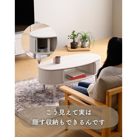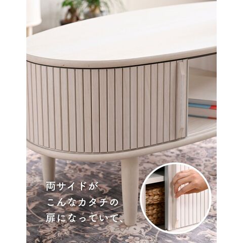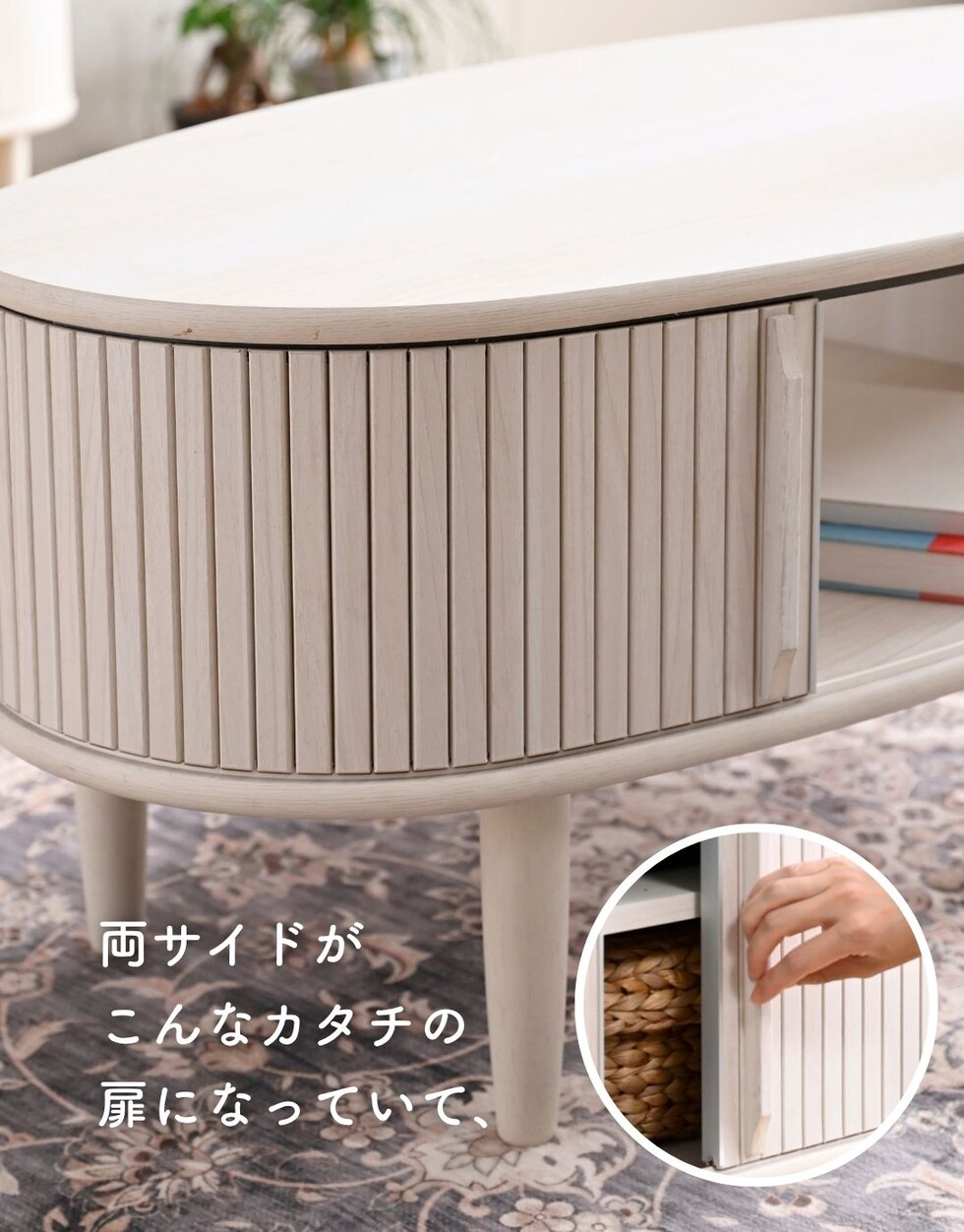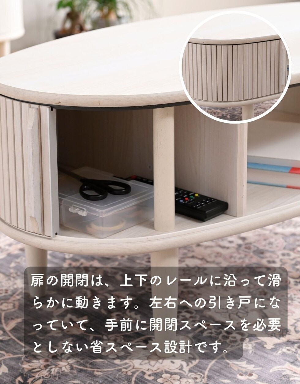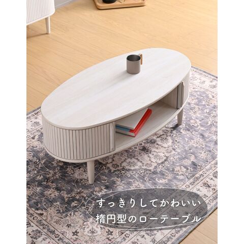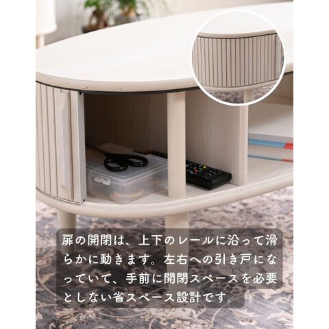 テーブル ローテーブル センターテーブル 楕円 引き戸 蛇腹 幅100 奥行50 高さ40cm 机 ダイニングテーブル 収納 収納付き 扉 リビング かわいい 木目調 木製 脚 ナチュラル 一人暮らし 山善 YAMAZEN 【送料無料】