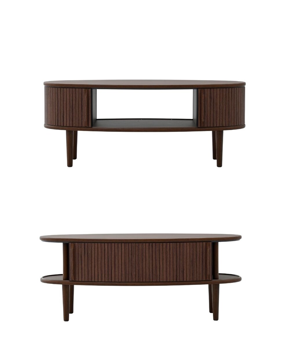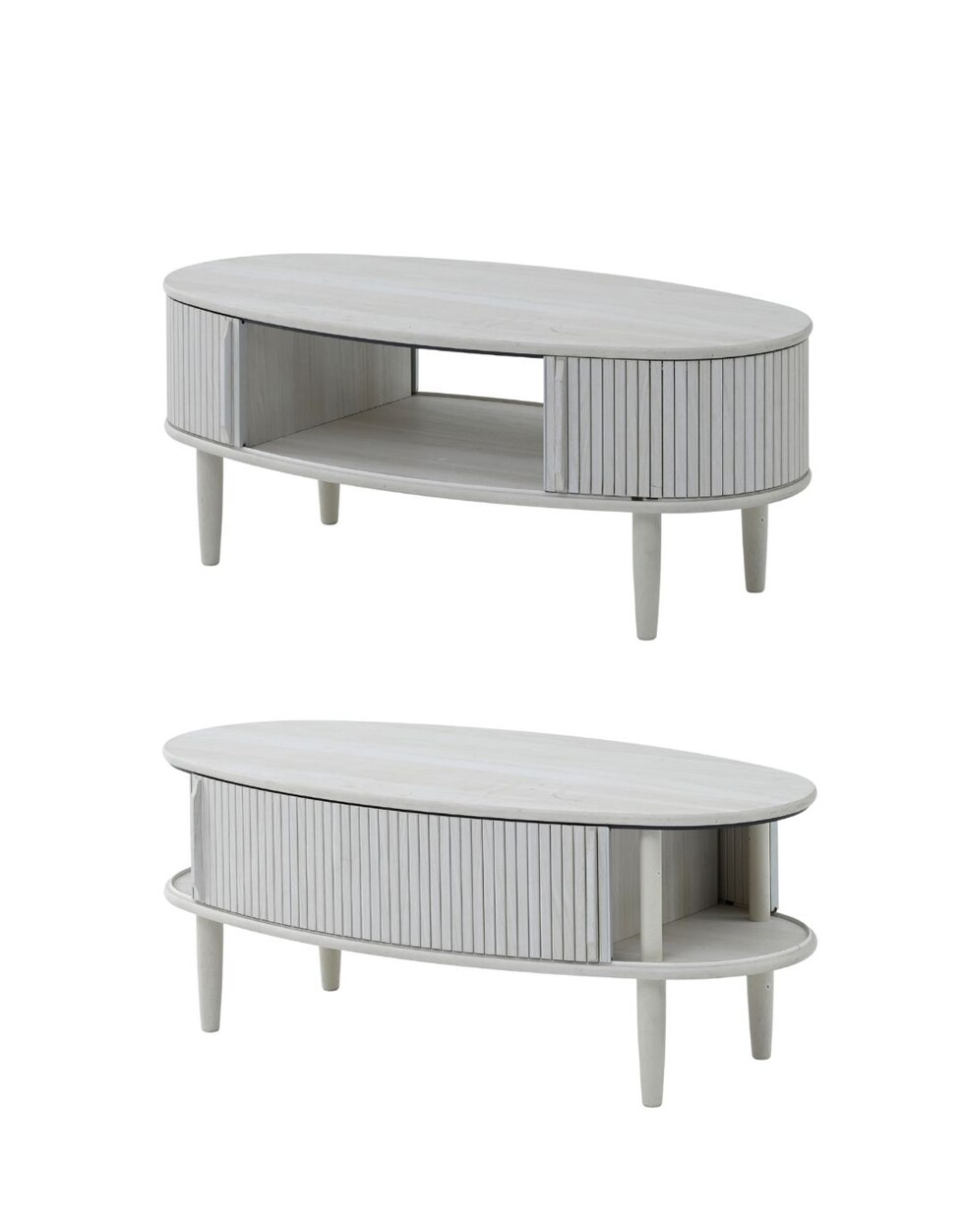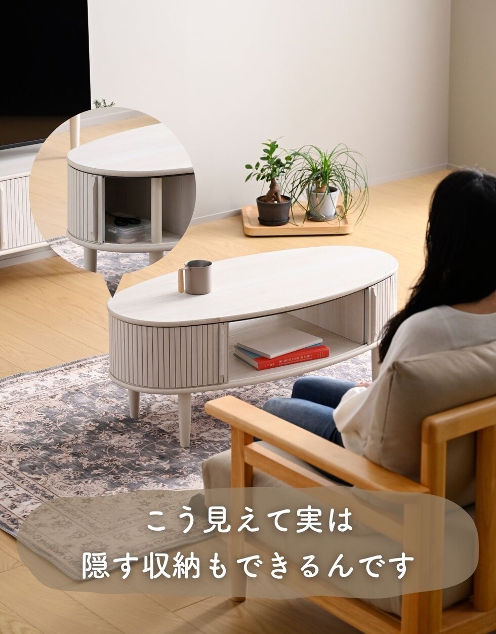 テーブル ローテーブル センターテーブル 楕円 引き戸 蛇腹 幅100 奥行50 高さ40cm 机 ダイニングテーブル 収納 収納付き 扉 リビング かわいい 木目調 木製 脚 ナチュラル 一人暮らし 山善 YAMAZEN 【送料無料】