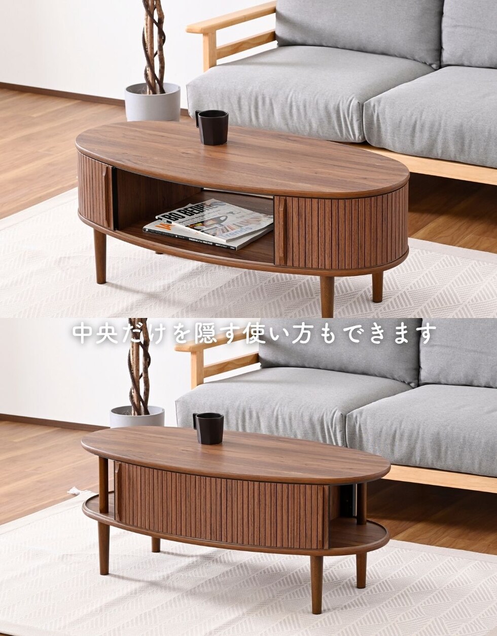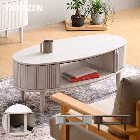 | 山善 YAMAZEN テーブル ローテーブル センターテーブル 楕円 引き戸 蛇腹 |