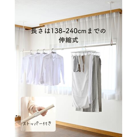 物干し竿 室内物干し 伸縮式 1.3~2.4m 伸縮 ストッパー付き 室内干し 部屋干し 白 木目調 洗濯物 物干し シンプル ドリームウェア 【送料無料】