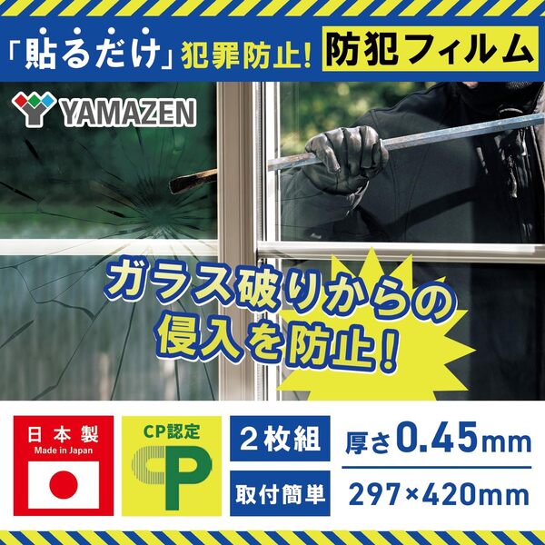 防犯フィルム 2枚組 CP認定 日本製 4層フィルム 窓ガラス 極厚 透明 A3サイズ 防犯フィルム窓ガラス用 窓 防犯 防犯対策 CPマーク 空き巣対策 賃貸 防犯グッズ 山善 YAMAZEN 【送料無料】