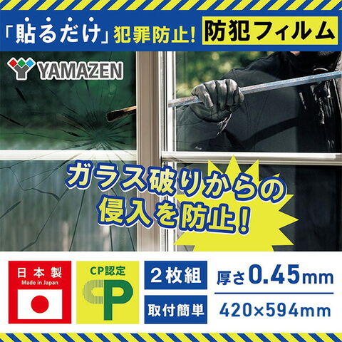 防犯フィルム 2枚組 CP認定 日本製 4層フィルム 窓ガラス 極厚 透明 A2サイズ 防犯フィルム窓ガラス用 窓 防犯 防犯対策 CPマーク 空き巣対策 賃貸 防犯グッズ 山善 YAMAZEN 【送料無料】
