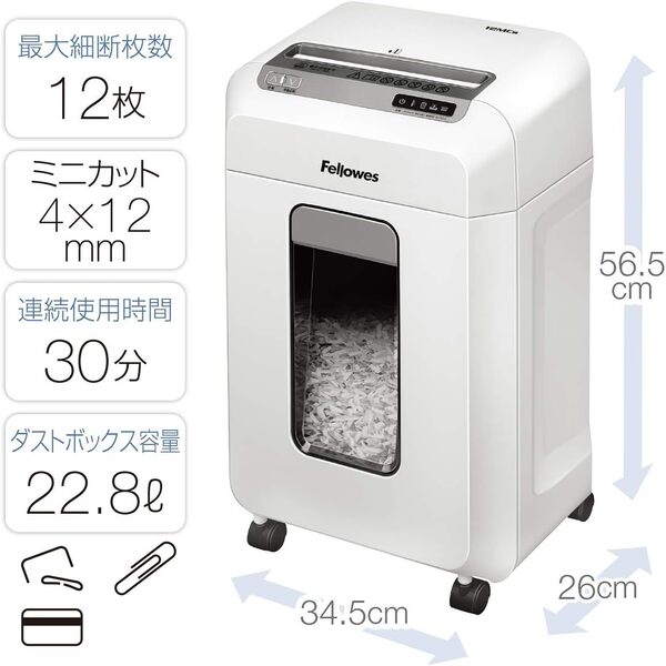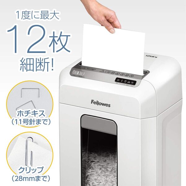 | フェローズ Fellowes シュレッダー 12MCs 家庭用 電動 12枚細断 ミニカット 連続使用時間30分 FE-4632801 ホワイト |