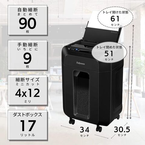 | フェローズ Fellowes シュレッダー オートフィード AutoMax 90M 最大自動給紙90枚 ミニカット FE-4621801 ブラック |