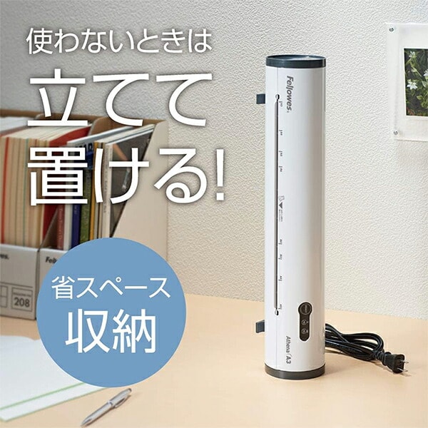 ラミネーター 2本ローラー Athena A3 FE-5744201 ホワイト アテナ ラミネート ラミネート加工 パウチ 75ミクロン 100ミクロン 軽量 コンパクト 省スペース 縦置き オフィス 事務所 オフィス機器 フェローズ Fellowes 【送料無料】
