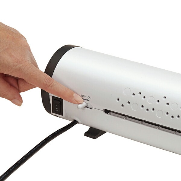 | 商品説明 | ●ユニークな筒型デザインの2本ローラーモデル ●使用しないときは縦置きの自立収納が可能 ●持ち運びに便利なキャリーハンドル付き ●ウォームアップ時間:約60秒 ●投入幅:330mm/A3 ●A4サイズ加工時間:約60秒 ●加工フィルム厚:75-100ミクロン ●最大加工厚:0.55mm ●コード:1.5m ●定格消費電力:600W |