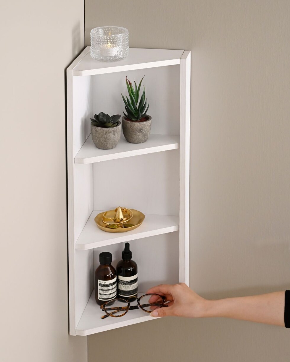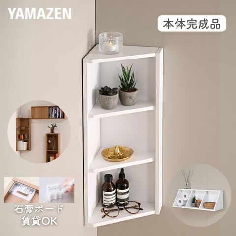 ウォールシェルフ コーナー 賃貸OK 本体完成品 石膏ボード 壁に付けられる 棚 シェルフ 幅22 奥行18.5 高さ60cm 収納棚 浮かせる収納 壁掛け トイレ 洗面所 キッチン 収納 収納ボックス 本棚 ラック 壁付け 壁面 スリム 山善 YAMAZEN 【送料無料】