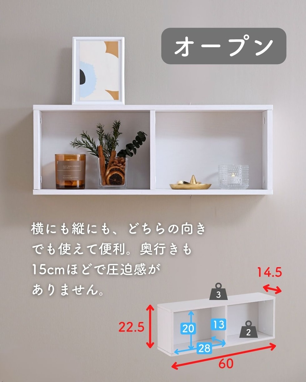 | 本体サイズ | 幅60×奥行14.5×高さ22.5cm 重量3kg |