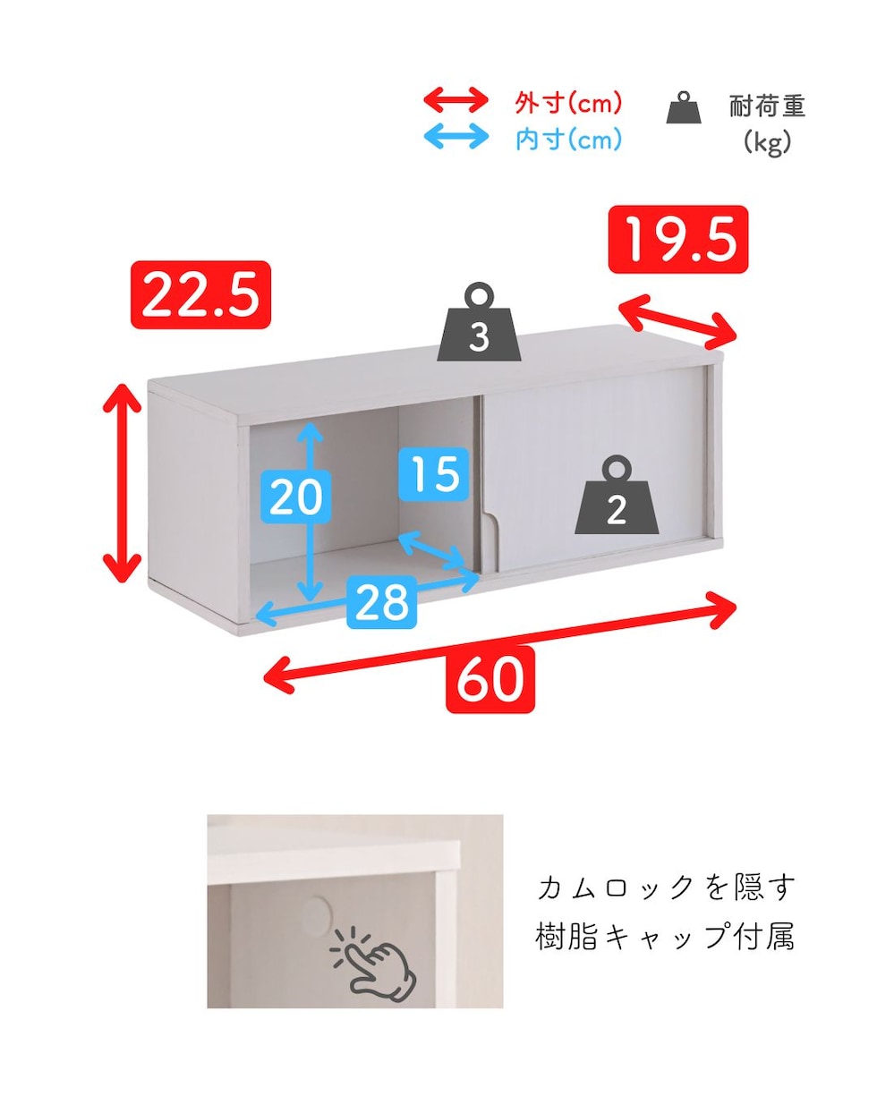 | 本体サイズ | 幅60×奥行19.5×高さ22.5cm 重量4kg |