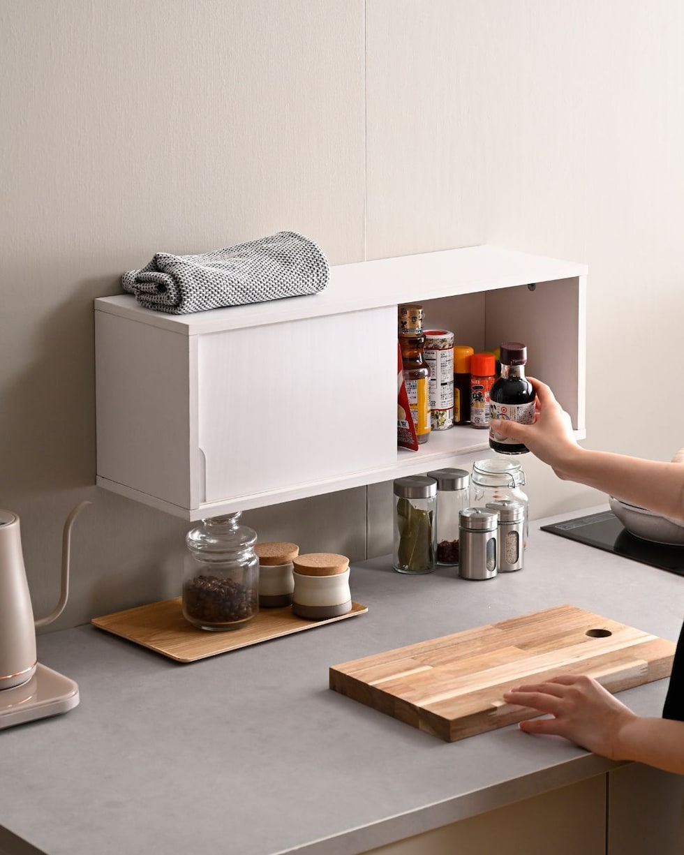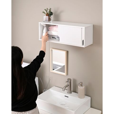 | 山善 YAMAZEN ウォールシェルフ 引き戸 賃貸OK 本体完成品 石膏ボード 壁に付けられる 棚 シェルフ |