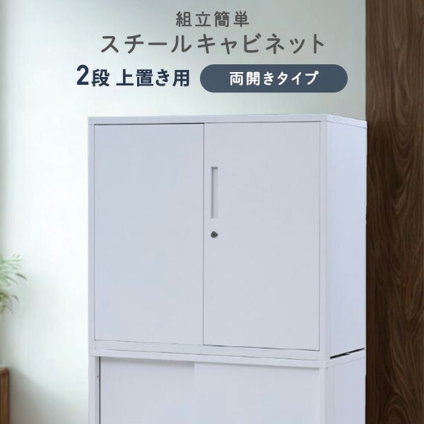 | 山善 YAMAZEN 組立簡単 スチールキャビネット 2段 上置き用 両開き EFC-DD2UP(WH) ホワイト |