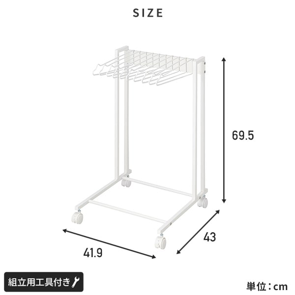 | 材質 | サイドフレーム、パイプ、ベースパイプ、ハンガーホルダー、ハンガー:スチール(エポキシ焼付塗装) キャスター:PE |