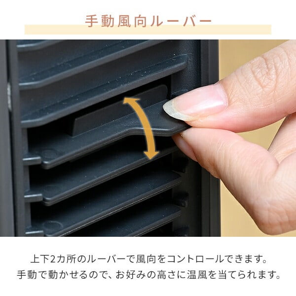 | 商品説明 | ●電源:AC100V(50/60Hz) ●消費電力:1000W ●電源コード長::約1.6m ●左右首振り ●首振り角度:約60度 ●安全装置:転倒OFFスイッチ、電流ヒューズ、温度ヒューズ、サーモスタット(温度過昇防止装置) ●温風/送風切替 ●各モード強弱2段階 ●切タイマー:1/2/4時間 ●8時間自動OFFタイマー搭載 ●人感センサー搭載 ●上下手動ルーバー搭載 ●消臭フィルター搭載 ●メーカー保証:1年間 |