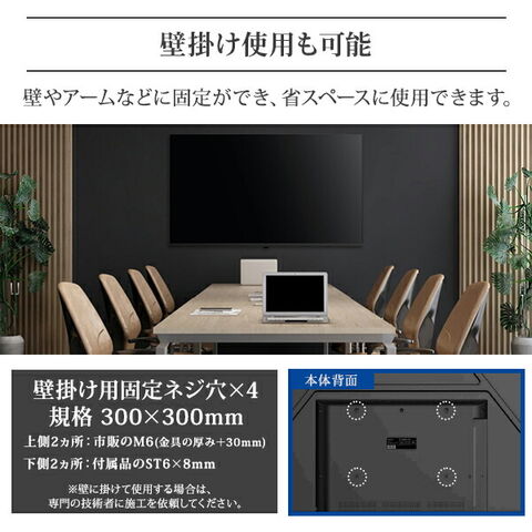 | 本体サイズ | 本体:幅111×奥行8.8×高さ64.4cm 重量 9.2kg スタンド取付時:幅111×奥行31×高さ69.7cm 重量9.3kg |