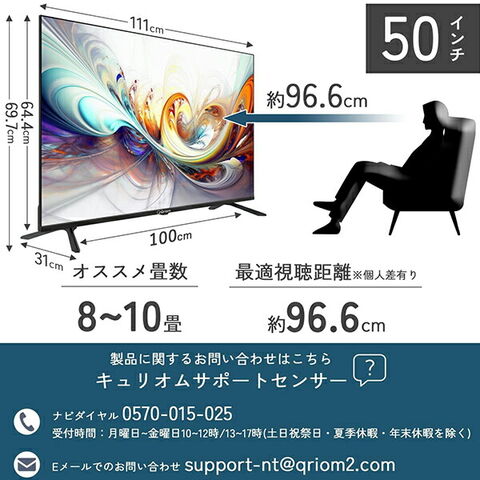 テレビ 50型 50型テレビ 液晶テレビ ネット動画対応 4K 50インチ 地上・BS・110度CS 外付けHDD録画 裏番組録画 QRK-50W4KST ネット対応 スマートテレビ 4K Bluetooth搭載 山善 YAMAZEN キュリオム Qriom 【送料無料】