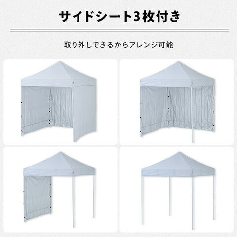 サイドシート3枚付き ワンタッチタープテント 2m×2m 頑丈 スチール テント タープ FRT-200(WH) ホワイト ワンタッチ ワンタッチテント 大型 UV加工 撥水 アウトドア キャンプ イベント 山善 YAMAZEN キャンパーズコレクション 【送料無料】