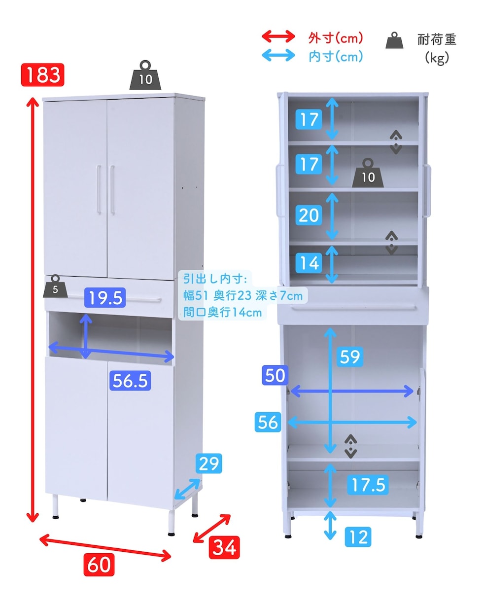 | 本体サイズ | 幅60×奥行34×高さ183cm 重量39kg |