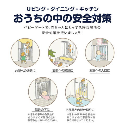| 商品説明 | ●ホワイト&グレーのカラーがインテリアに馴染むベビーゲート ●使用対象:生後24か月以内 ●取り付け可能幅:62cm-70cm ●調節ボルト直径:3cm ●つっぱり式の簡単設置 ●便利な前後両開き扉 ●片手で操作して簡単に開閉 ●90度まで開くと固定される解放機能付き ●お子様が簡単に開けることができないダブルロック式 ●自動で閉まる仕様で閉め忘れを軽減 |