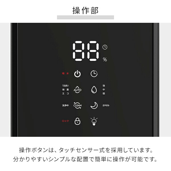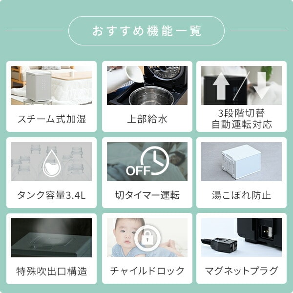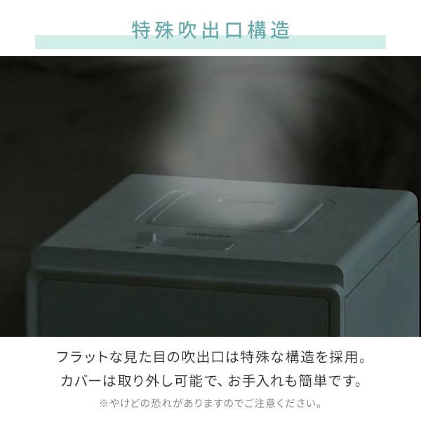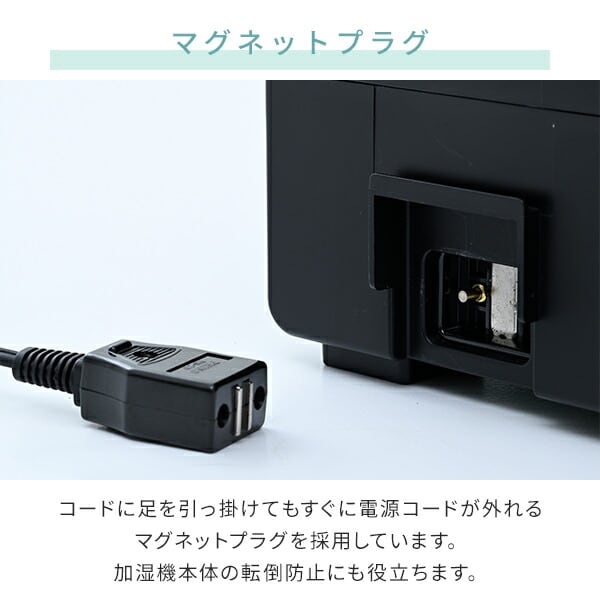| 商品説明 | ●電源:AC100V(50/60Hz) ●定格消費電力:600W※加速ヒーター時(沸騰するまで) ●運転モード3段階:強/中/弱 ●加湿量:(強)550ml/h / (中)350ml/h / (弱)250ml/h ●消費電力:(強)480W / (中)310W / (弱)240W ●連続使用時間(約):(強)6時間/(中)9時間/(弱)13.5時間 ●自動運転モード搭載:「うるおい」/「快適」/「エコ」の3段階モードから選択可能 ●おやすみ運転:湿度50%~60%を保つように運転します ●適用床面積の目安:木造和室約9畳まで / プレハブ洋室約15畳まで ●水タンク容量:約3.4L ●切タイマー:1~6時間※1時間刻み ●チャイルドロック搭載 ●ムードランプ搭載 ●コード長さ:約1.5m ●安全装置:温度ヒューズ、電流ヒューズ ●転倒時お湯がこぼれにくい転倒流水防止構造 ●吹出口はフラットな見た目の特殊構造 ●便利な上部給水方式 ●内釜・内蓋が外せてお手入れ簡単 ●マグネットプラグ採用 ●減光機能:運転時に何らかの操作を行ってから1分経過すると、表示部と操作部の明るさを抑えます ●メーカー保証:1年間 |