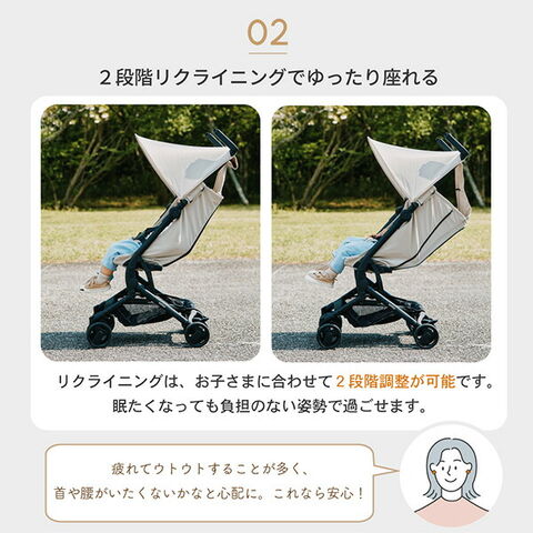 | 商品説明 | ●使用対象:生後7か月から体重15kg(36か月頃)まで ●リュック型の収納バッグ付き ●レインカバー付き ●機内持ち込み可能な折りたたみサイズ ●股ベルトカバー、5点式シートベルトでしっかりガード ●2段階リクライニング ●ダブルタイヤで安定感抜群 ●簡単ロック機能 |