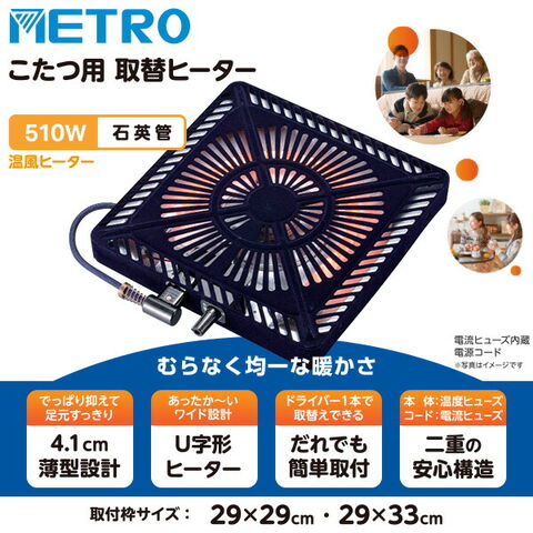 | メトロ METRO こたつ ヒーター こたつ用 ヒーターユニット 石英管ヒーター 510W スイッチ MSU-501HT(K) |