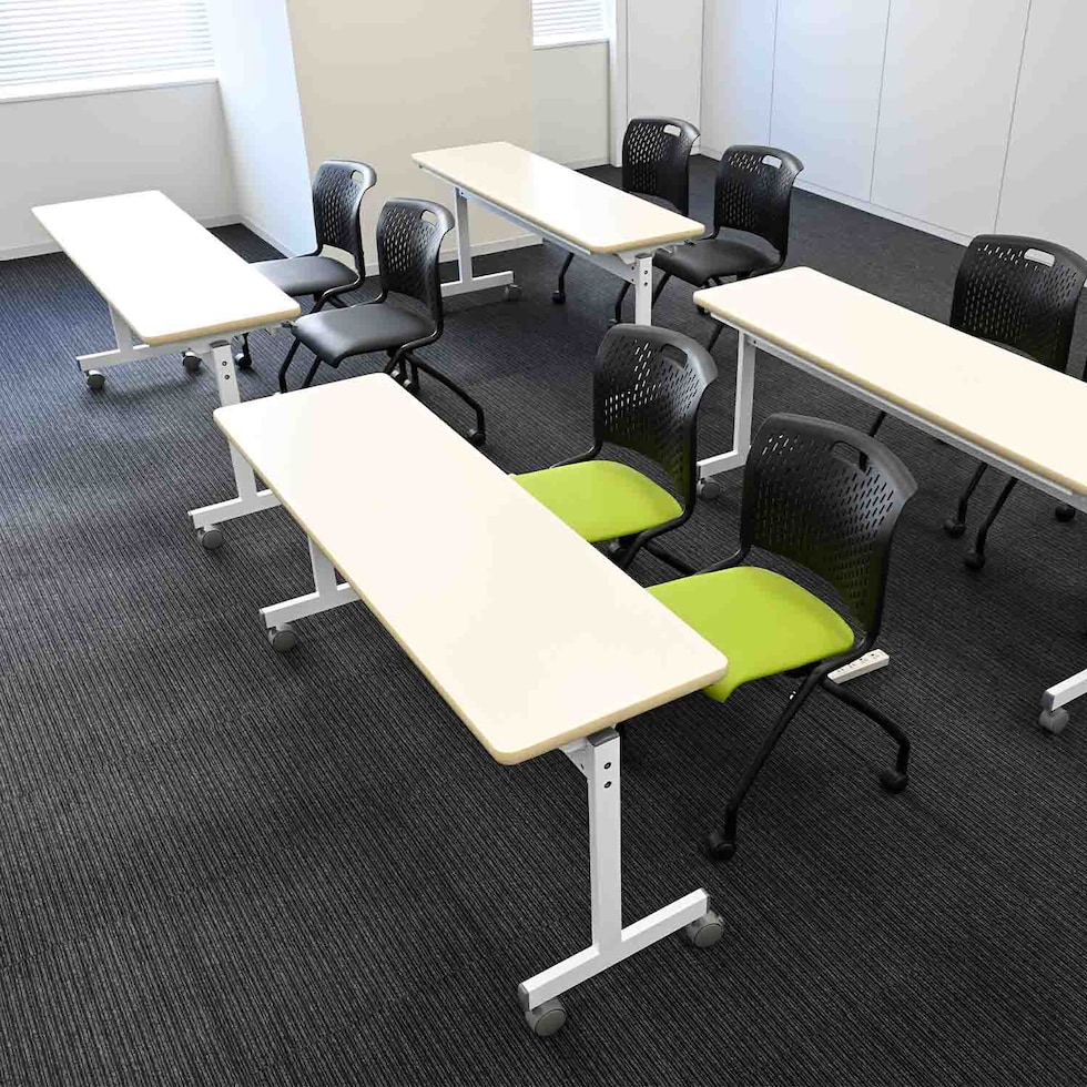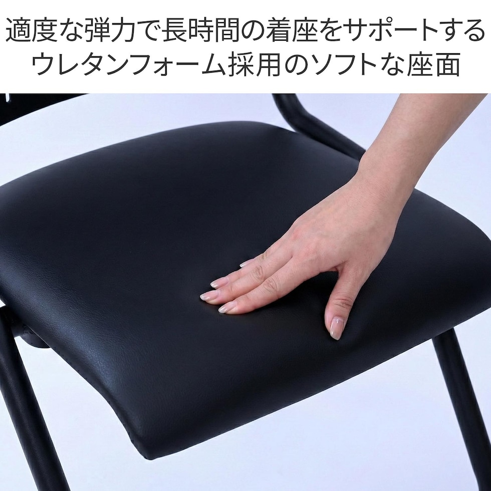 | 商品説明 | ●座面を跳ね上げて前後に収納できる省スペースなネスティング機能 ●届いたその日から即戦力として使用可能な、組み立て不要の完成品 ●設営やレイアウト変更をスピーディーに行えるスムーズなキャスター付き ●適度な弾力で長時間の着座をサポートする、ウレタンフォーム採用のソフトな座面 ●汚れても水拭きで簡単にお手入れができる、清潔感のある合成皮革仕様 ●デスクワークやミーティングに最適な座面高42.5cm設計 |