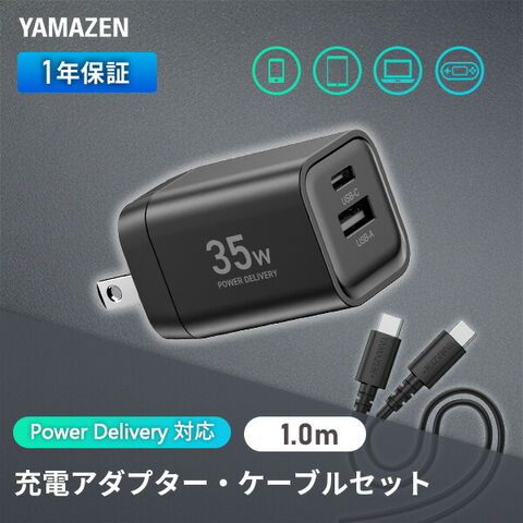 PD対応 アダプター ケーブル セット 純正 充電器 35W 急速充電 安心 PSE認証品 YPD-35CA/YPDC-6010S PD対応 ACアダプタ 充電 折りたたみ式プラグ 山善 YAMAZEN 【送料無料】