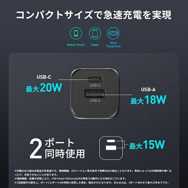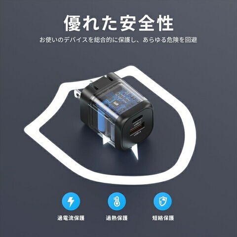 | 商品説明 | ●山善純正のPD対応アダプター ●コンパクトサイズで急速充電を実現 ●対応する充電機器に合わせて電圧を調整し、スピーディーな充電が可能 ●PD規格バージョン3.0対応 ●GaN※高耐圧チップ採用 ※窒化ガリウム…熱伝導率が大きく放熱性に優れた半導体 ●耐トラッキング対策 ●持ち運びに便利な折りたたみ収納式プラグ ●日本国内専用 【YPD-20CA】 入力:100-240V~ 50/60Hz 0.8A 出力(USB-C):5.0V 3.0A/9.0V 2.22A/12.0V 1.67A(20WMax) 出力(USB-A):5.0V 3.0A/9.0V 2.0A/12.0V 1.5A(18W Max) 出力(USB-C+USB-A):5.0V 3.0A(15W Max) 合計出力:20W(Max) 【YPDC-6015S】 ●山善純正のPD対応ケーブル ●最大出力:60W ●最大通信速度:最大480Mbps ●適用規格:USB PD3.0 ●通信規格:USB2.0 ●絡まりにくいシリコンケーブル ●屈曲試験回数:25000回 ●定格電流:最大3A ●定格電圧:最大20V ●長さ:(約)1.5m |