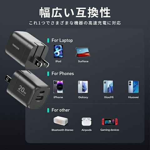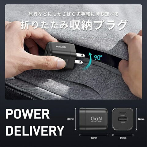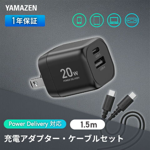 PD対応 アダプター ケーブル セット 純正 充電器 20W 急速充電 安心 PSE認証品 YPD-20CA/YPDC-6015S PD対応 ACアダプタ 充電 折りたたみ式プラグ 山善 YAMAZEN 【送料無料】