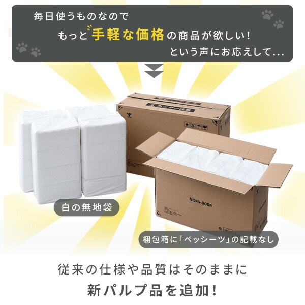 | 商品説明 | ●一回分のおしっこをしっかり吸収 ●一回使い捨てタイプなので清潔 ●ストックしてもかさばらない薄型タイプ ●おしっこの状態で健康状態を確認しやすい白色シート ●引っかき対策に特殊エンボス加工 ●インテリアを邪魔しないシンプルパッケージ ●お届け用ダンボールに「ペットシーツ」の記載なし |